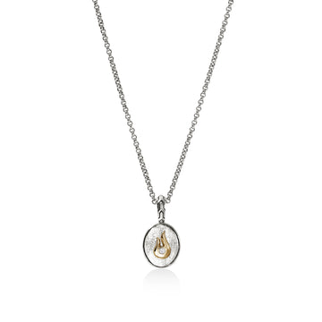 Artisan handcrafted in reclaimed sterling silver, featuring a hand-carved flame motif in reclaimed gold—a symbol of passion and inspiration.