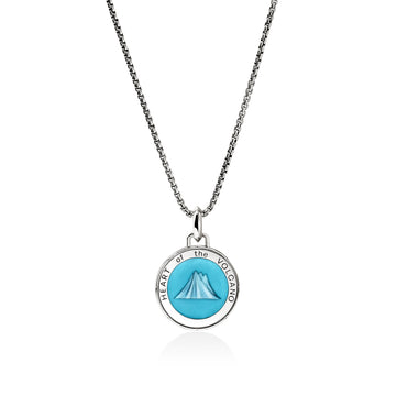 Artisan handcrafted in reclaimed sterling silver with aqueous enamel, featuring a hand-carved volcano motif—a symbol of inner strength.