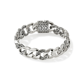 The classic heavyweight link. This bold curb bracelet is punctuated by our signature carved chain motif. Artisan handcrafted in reclaimed sterling silver.