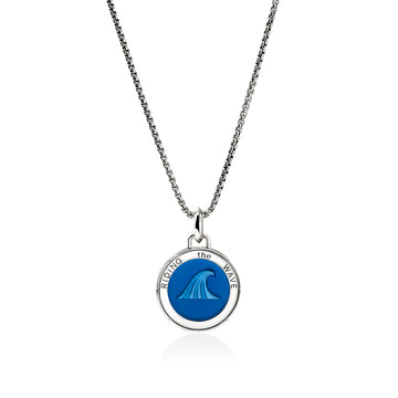 Artisan handcrafted in reclaimed sterling silver with aqueous enamel, featuring a hand-carved wave motif—a symbol of growth, renewal and transformation.