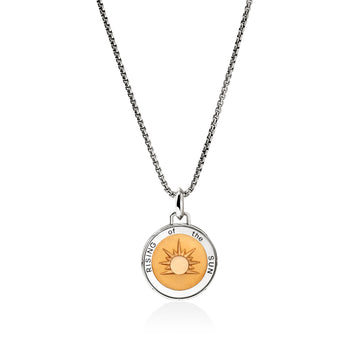 Artisan handcrafted in reclaimed sterling silver with aqueous enamel, featuring a hand-carved sun motif—a symbol of new beginnings.