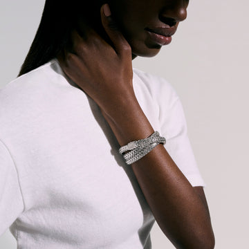 Taking approximately 9 hours to cast and weave. Our most iconic design distills the complex art of chain-weaving into a stunningly simple form.