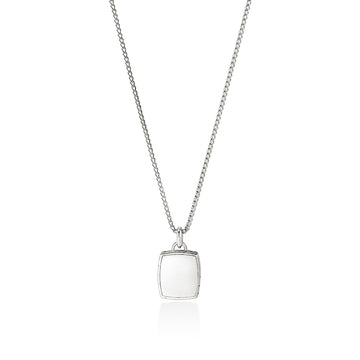 An essential tag pendant in reclaimed sterling silver, finished with hand-carved detailing.