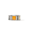 A chunky band ring in reclaimed dark silver, inlaid with black onyx, hematite and black mother of pearl. Accented with our heritage carved chain motif. Artisan handcrafted, ethically sourced.