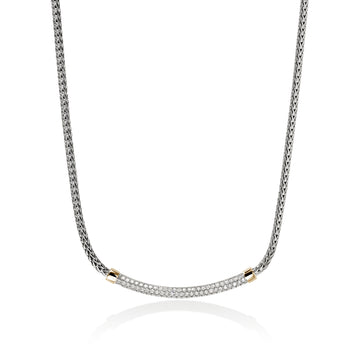 This mini chain necklace features our signature carved chain motif and a finely set diamond pavé bar. Artisan handcrafted in reclaimed gold and sterling silver with ethically sourced diamonds.